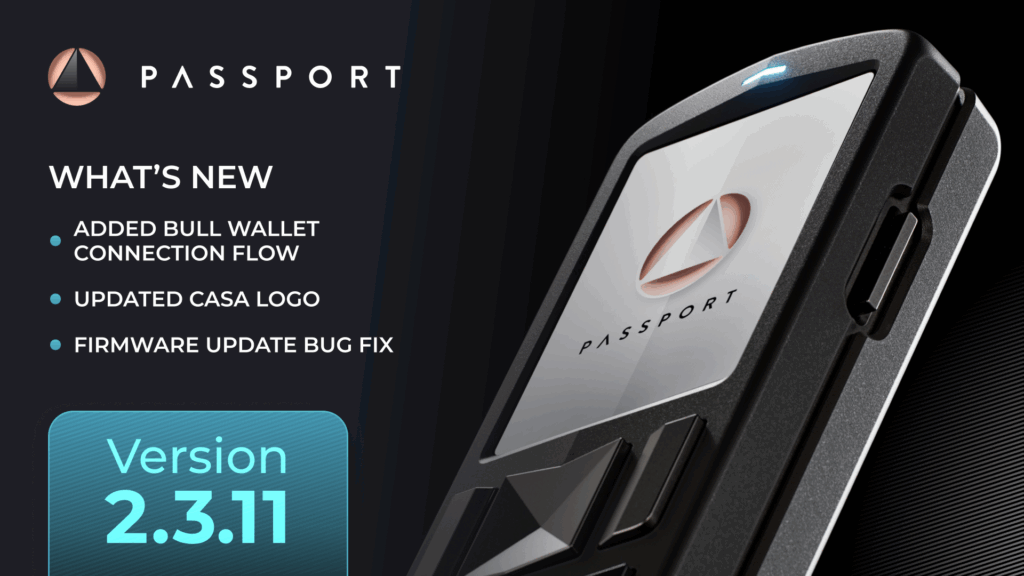 We’re excited to announce that the latest version of Passport Core firmware – 2.3.11 – is now live! To download it, simply initiate the update from Envoy to be guided through the process.